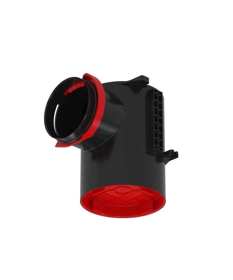 Plénum TVA coudé pour bouches d'insufflation ou extraction Ø 125 mm. Utilisé pour raccorder le ComfoTube au moyen de manchons de raccordement.