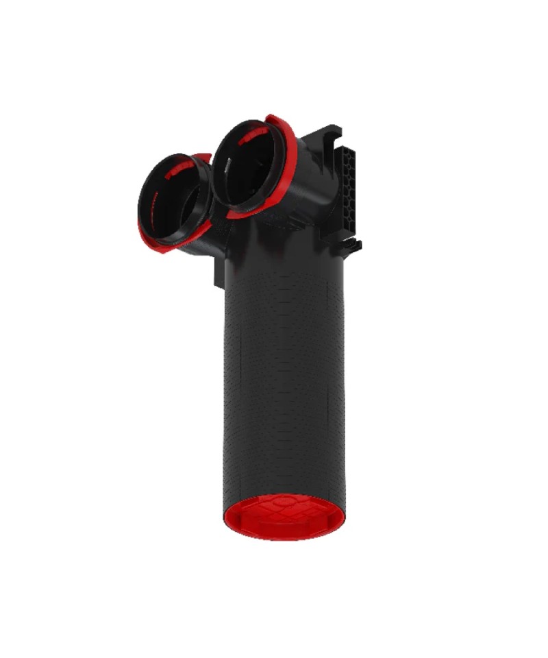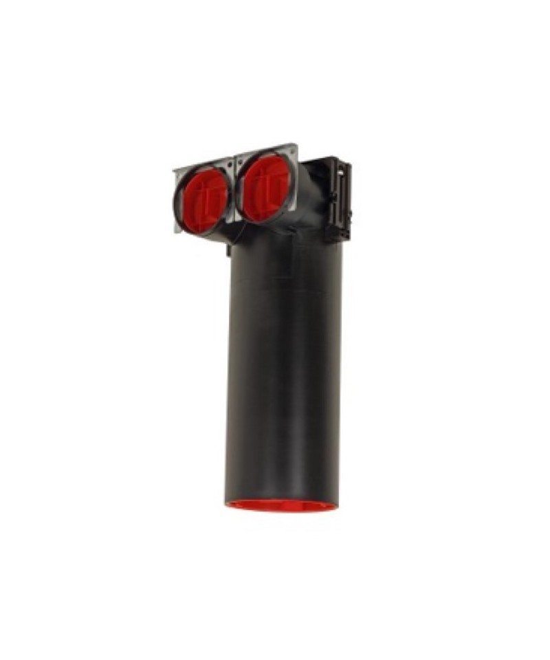 Plénum TVA coudé pour bouches d'insufflation ou extraction Ø 125 mm. Utilisé pour raccorder le ComfoTube 90 mm sur 2 piquages de raccordement.