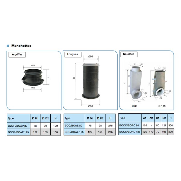 Manchette à griffes, longue ou coudée (voir les cotes sur l'image n°2)