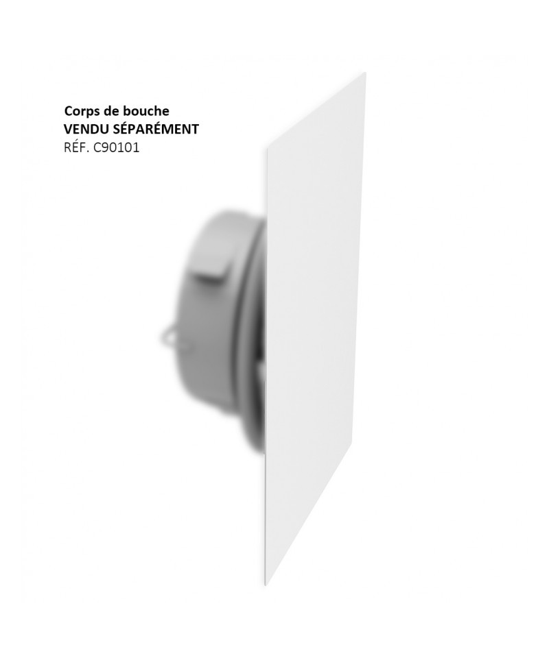 Façade de bouche rectangulaire extraplate blanc RAL 9010 pour corps de bouche d'insufflation Design. Il est possible de peindre la façade.