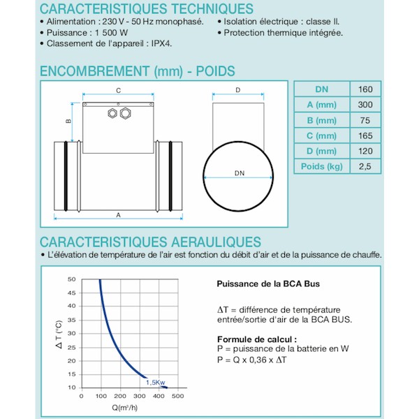 Ce modèle BCA Bus est une batterie électrique qui permet le pré-chauffage de l’air neuf avant la VMC Double-flux InspirAIR®. Elle permet d’éviter le gel de l’échangeur en hiver. La ventilation peut fonctionner jusqu’à une température extérieure de -20°C. Cet accessoire est pilotée par les VMC Double Flux InspirAIR®.