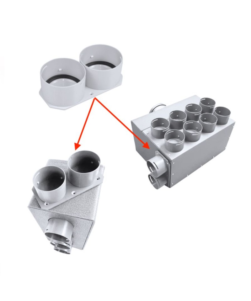 Plaque d'extension avec deux connecteurs (diamètre 75 ou 90) pour caissons de distribution EASY RENOV ECO