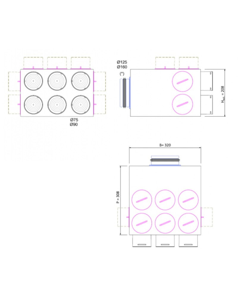 MPLU01 | Caisson de distribution d'air Easy Renov Plus M Ø 125/160 - 6 x Ø 75 | Ø 125/160 |