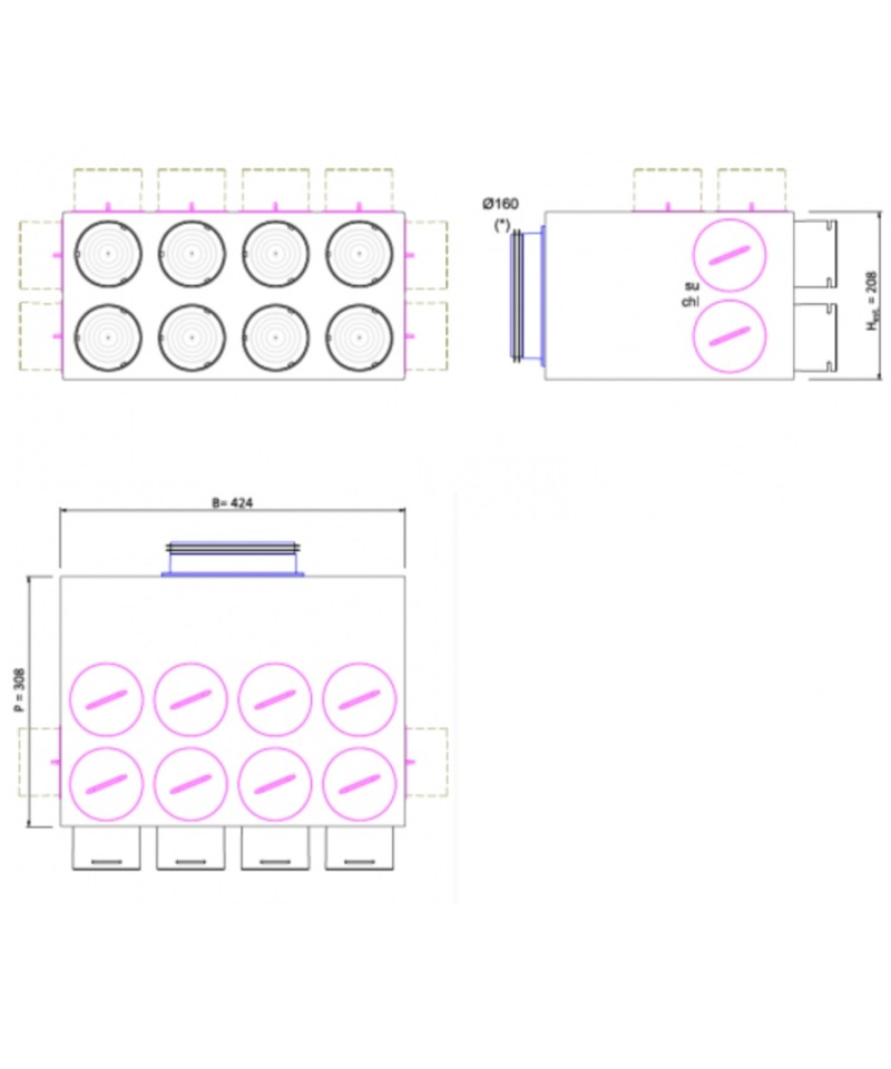 LPLU02 | Caisson de distribution d'air Easy Renov Plus M Ø 125/160 - 8 x Ø 90 | Ø 160/180 |