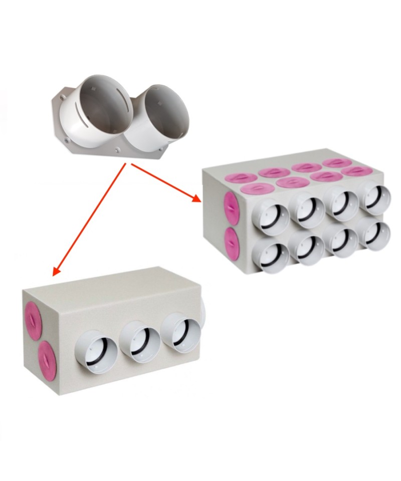 Plaque d'extension avec deux connecteurs (diamètre 75 ou 90) pour caissons de distribution EASY RENOV PLUS