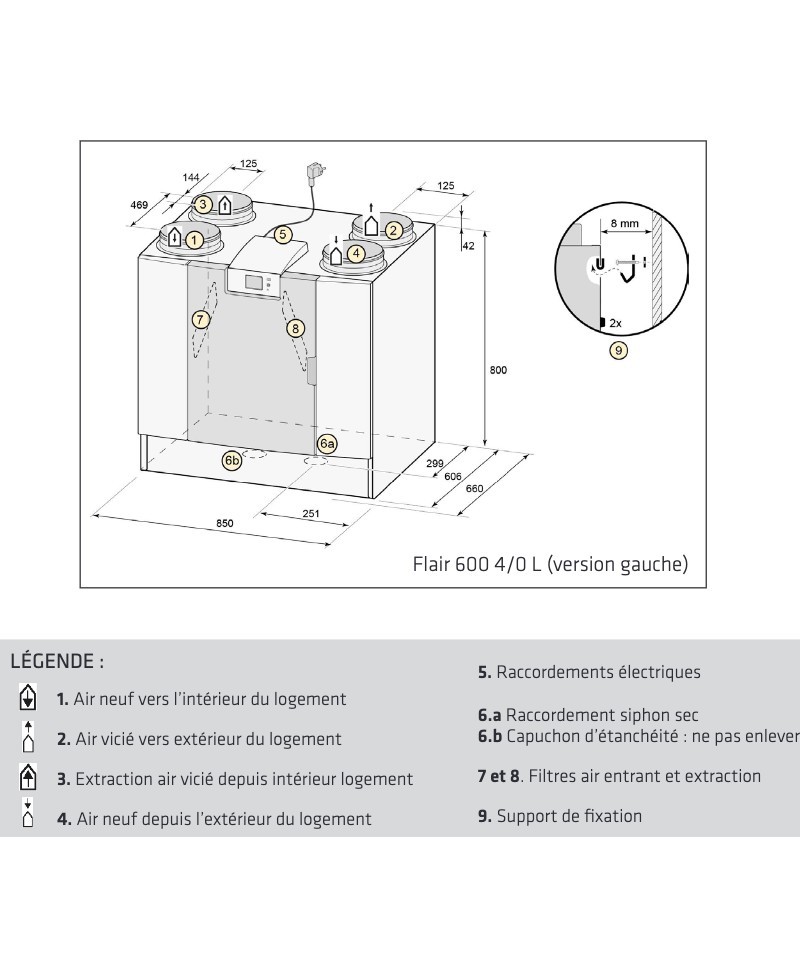 433002 | Flair 600 4/0 L EU - Echangeur Enthalpique | Gauche |