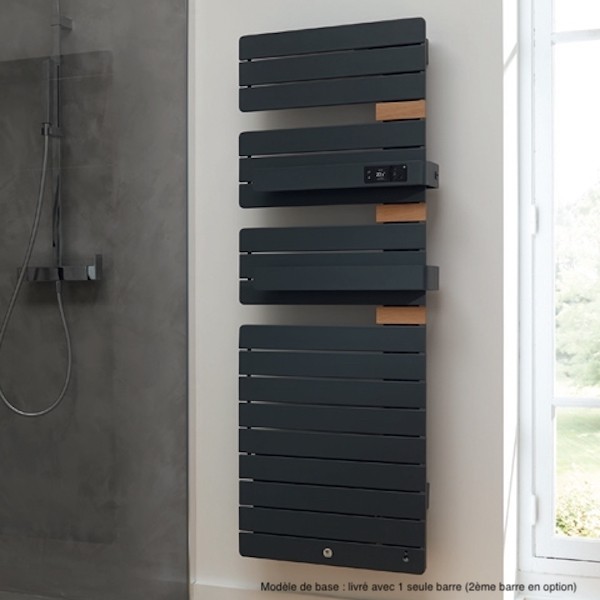 Radiateur sèche-serviettes électrique design avec mât à droite ou à gauche et à ouverture latérale
