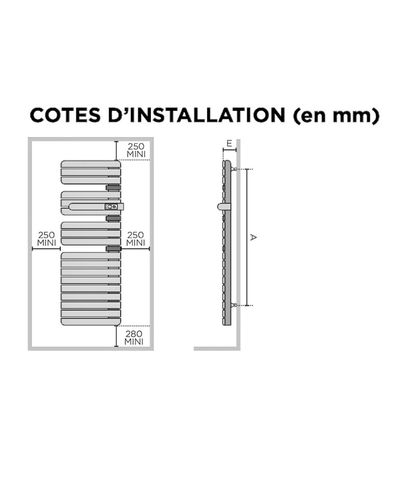 Radiateur sèche-serviettes électrique design avec mât à droite (ou à gauche) et à ouverture latérale