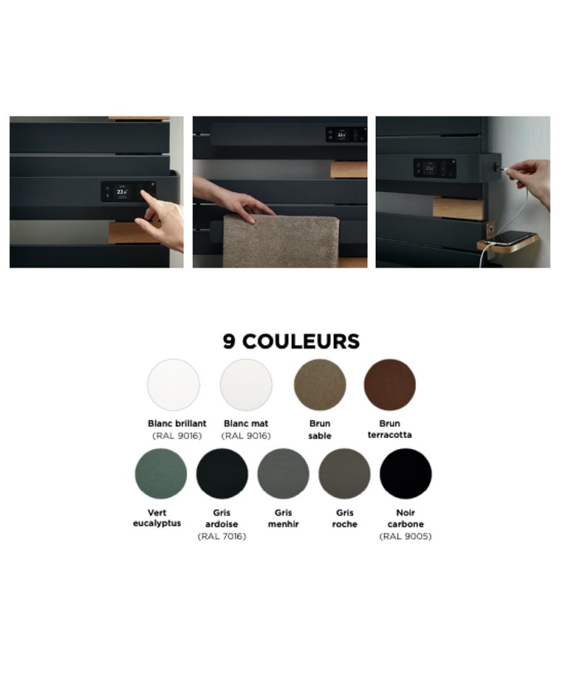 Boîtier de commande tactile à portée de main avec écran LCD : 2 modes de programmation: basic, programmable (3 plages horaires). Affichage de l'heure et de la météo. Fonction Boost et Séchage des serviettes en accès direct grâce aux boutons dédiés sur le boîtier. Visualisation des consommations énergétiques. Verrouillage possible des commandes par code PIN