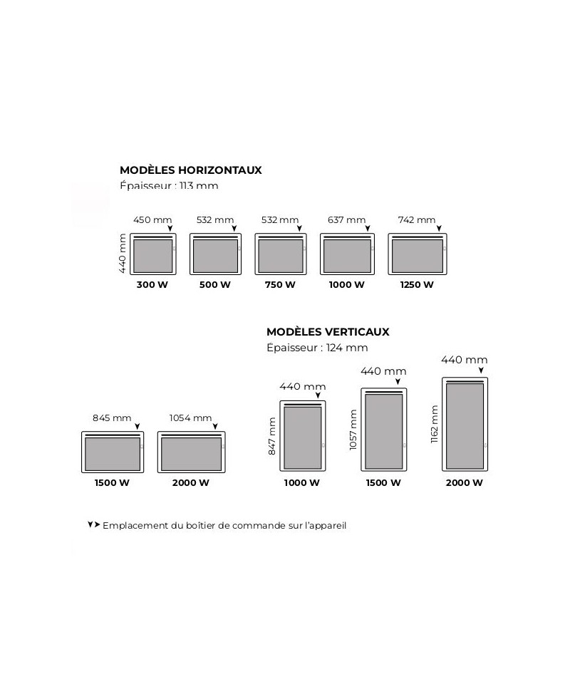| Réf. | Puissance | DimensionsL x H x Ep (mm) | Couleur | Poids |