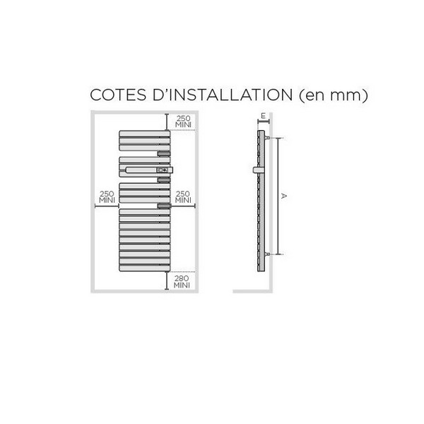 Radiateur sèche-serviettes électrique design avec mât à droite ou à gauche et à ouverture latérale