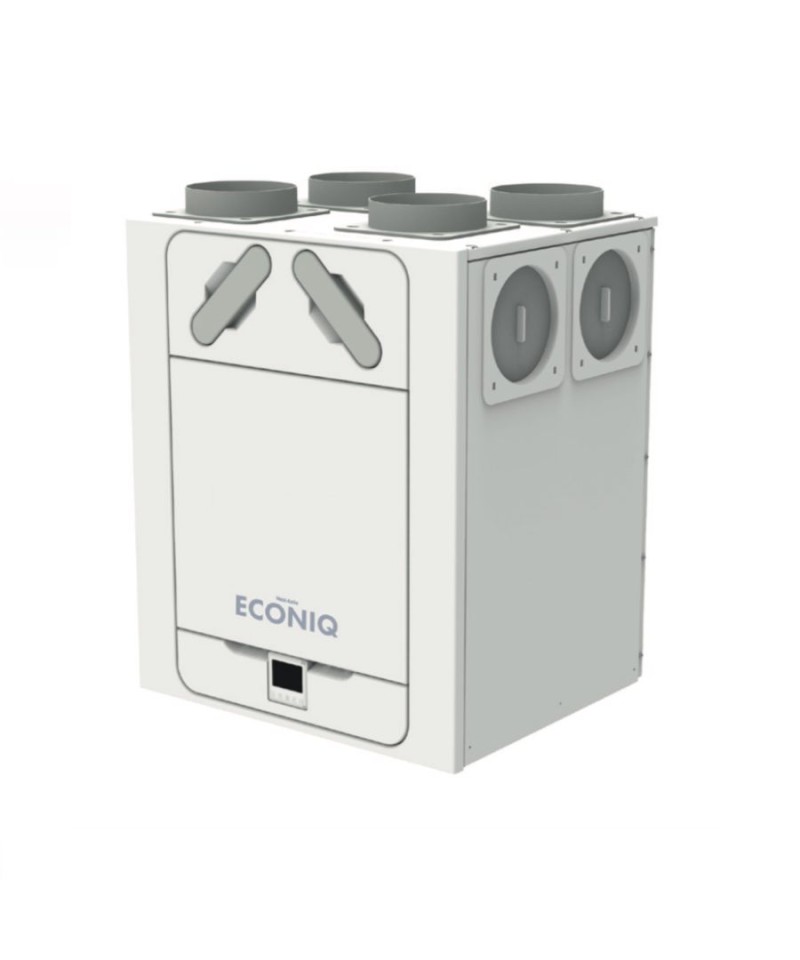 Vent-Axia Econiq est une gamme de 4 unités de ventilation (300/375/450/600 m3/h) pour une ventilation équilibrée avec récupération de chaleur (système D) et adaptée aux maisons et appartements à faible consommation d’énergie.